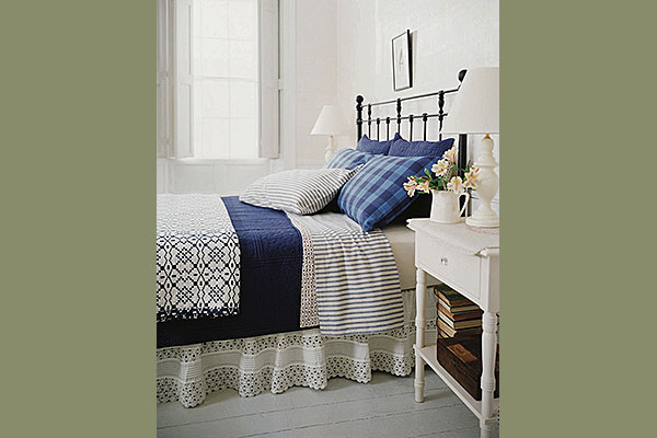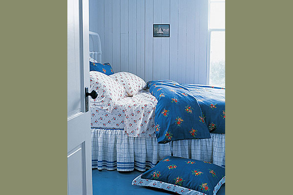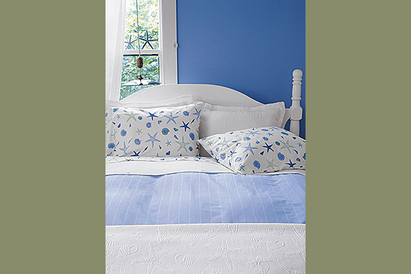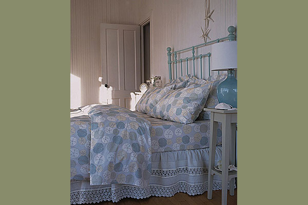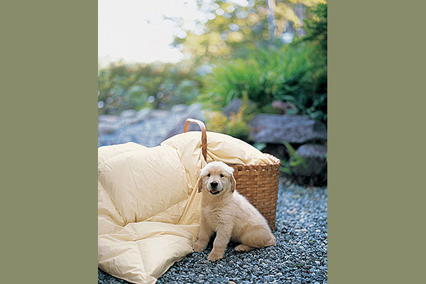 Products in the Bed and Bath category present an interesting photographic challenge: how to convey the texture and tactile experience of using the product. By creating the appropriate setting for each product, I express the softness, crispness, freshness or coziness of each individual item. Lighting, props, and the furnishings all work to complement the personality of the product and express the customer experience. Visually, the scene invites the viewer by conveying the sense that the room or products are anticipating their arrival. Add the creative touch of a fresh face or a puppy and it's a great way to either start or end any day.